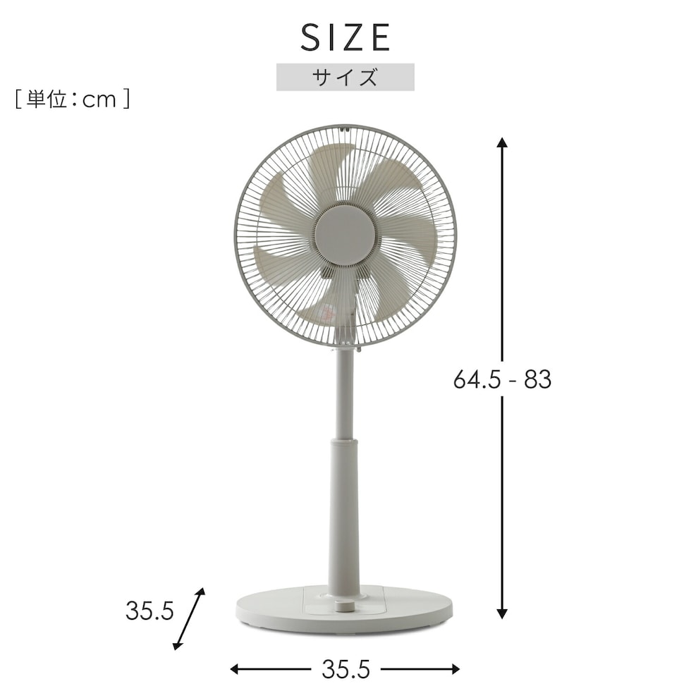 | 本体サイズ | 幅35.5×奥行35.5×高さ64.5-83cm 重量2.5kg |