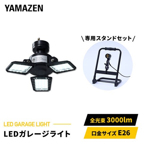 LED ガレージライト 作業灯 3000lm 口金E26 屋内用 ポータブルスタンド GL3-0300/PLS-E26 LEDライト 工事不要 車庫 倉庫 作業灯 山善 YAMAZEN 【送料無料】