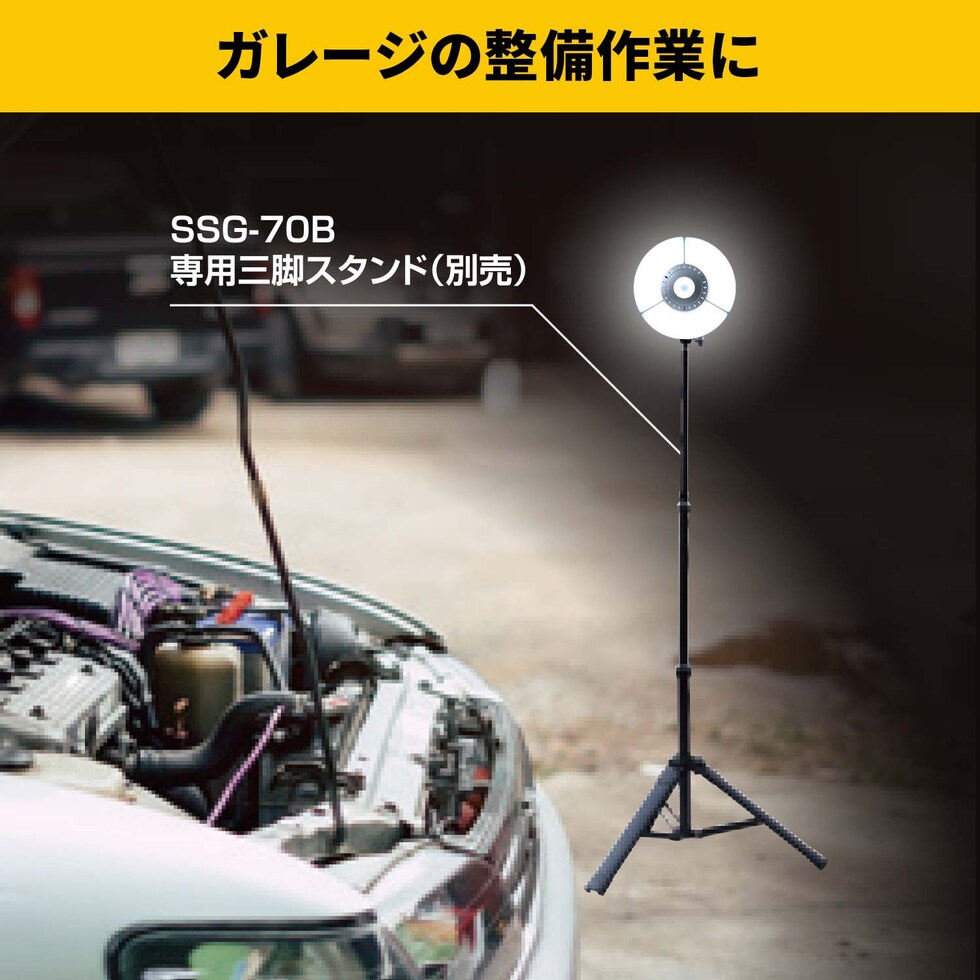 | 山善 YAMAZEN LED ガレージライト 作業灯 サークル型 70W 7000lm 口金E26 屋内用 三脚スタンド GL3-0700/SSG-200 |