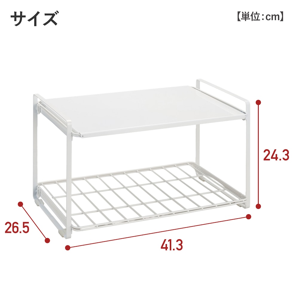 | 商品説明 | ●山型食パンも収納できるトースターラック ●トースター周りをまとめて収納 ●スチール製なのでお手入れ簡単 ●脚ゴム付き ●工具不要の簡単組立 ●耐荷重:全体で5kg |