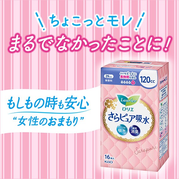 ロリエ さらピュア ロング吸水ナプキン 長時間・夜用 120cc ふんわりタイプ 16枚×16(256枚) 吸水ライナー 吸水ケア パンティーライナー 尿もれ 尿漏れ 女性用 花王 Kao 【送料無料】