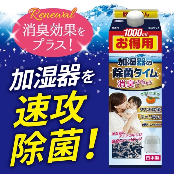 加湿器の除菌タイム 消臭Plus 液体タイプ お得用 1000ml 加湿器 加湿器用 除菌剤 洗浄剤 タンクに入れるだけ 除菌 雑菌 菌 ヌメリ防止 ニオイ 消臭 掃除 掃除用品 除菌対策 液体 柿渋 空気清浄機 大容量 業務用 日本製 ウエキ UYEKI 【送料無料】
