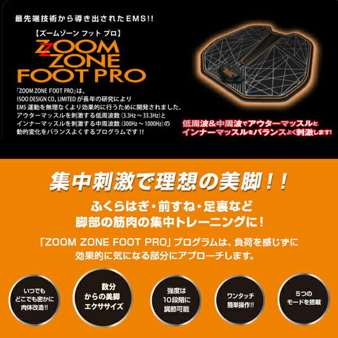 ZOOMZONE FOOT PRO ズームゾーン フット プロ EMSマシン ZZP-04 筋肉 美脚 足 トレーニング シェイプアップ エクササイズ ダイエット ふくらはぎ 前すね 足裏 脂肪 EMSマシーン 低周波 中周波 BWS 【送料無料】