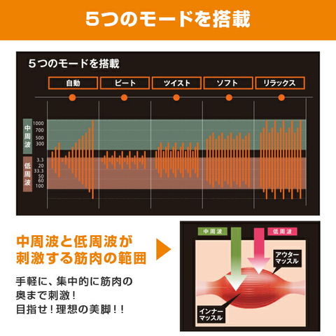 | 商品説明 | ●集中刺激で理想の美脚! ●脂肪の奥の筋肉まで届いて効く! ●低周波&中周波でアウターマッスルとインナーマッスルをバランスよく刺激 ●1日数分からの美脚エクササイズ ●いつでもどこでも密かに肉体改造! ●ワンタッチ簡単操作! ●強度は10段階に調節可能 ●5つのモードを搭載:自動・ビート・ツイスト・ソフト・リラックス ●電池の種類:コイン形リチウム電池CR2032 ●レベル:1~10モード ●動作周波数:3.3Hz~100Hz 300Hz~1000Hz ●推奨使用環境温度:約15~35度 ●取扱説明書、電池2個 |