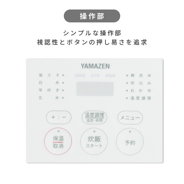 | 山善 YAMAZEN 炊飯器 3合 マイコン式炊飯器 3合炊き 一人暮らし マイコン炊飯器 低温調理 温度調理 省エネ 早炊き YJT-M05(W)/(B) |