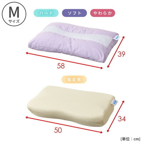 | 本体サイズ | ハードパイプ ソフトパイプ やわらか 幅58×奥行39cm 重量0.98kg 低反発 幅50×奥行34cm 重量0.98kg |
