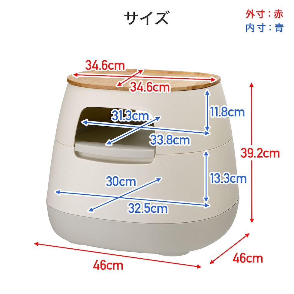 | 本体サイズ | 幅46×奥行46×高さ39.2cm 重量4.523kg |