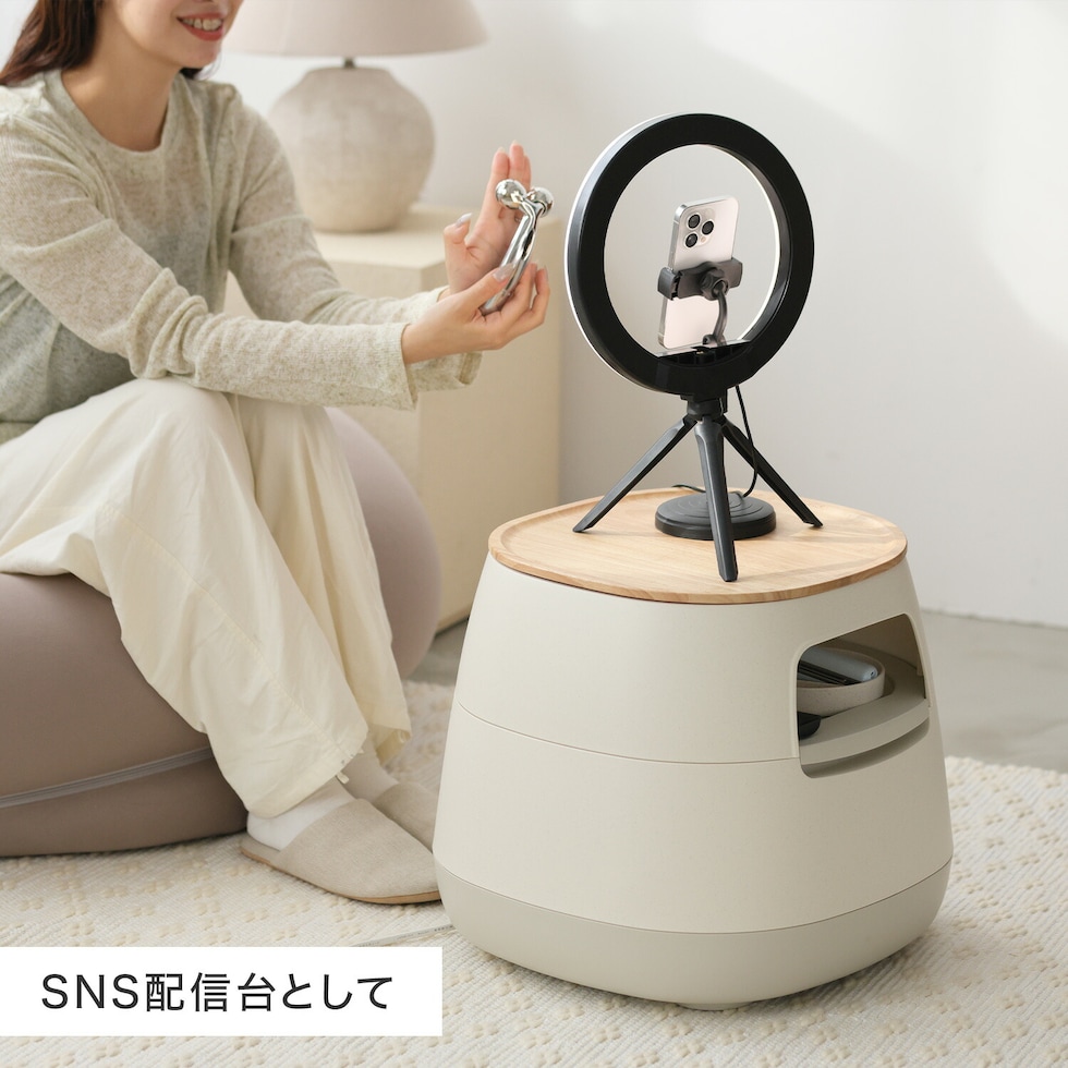 | 商品説明 | ●ごちゃごちゃしたリビングもすっきり片付く収納付きローテーブル ●テーブルは物が転がり落ちにくい仕様 ●「隠す/見せる」を使い分けできる三層構造 ●底部にはタップ収納&配線穴付き ●お好みで取り付けられるキャスター付き ●天板を使うと片付けもラクラク ●耐荷重:上本体 20kg、トレー2kg、本体(テーブルタップカバー含む)20kg、木天板10kg |