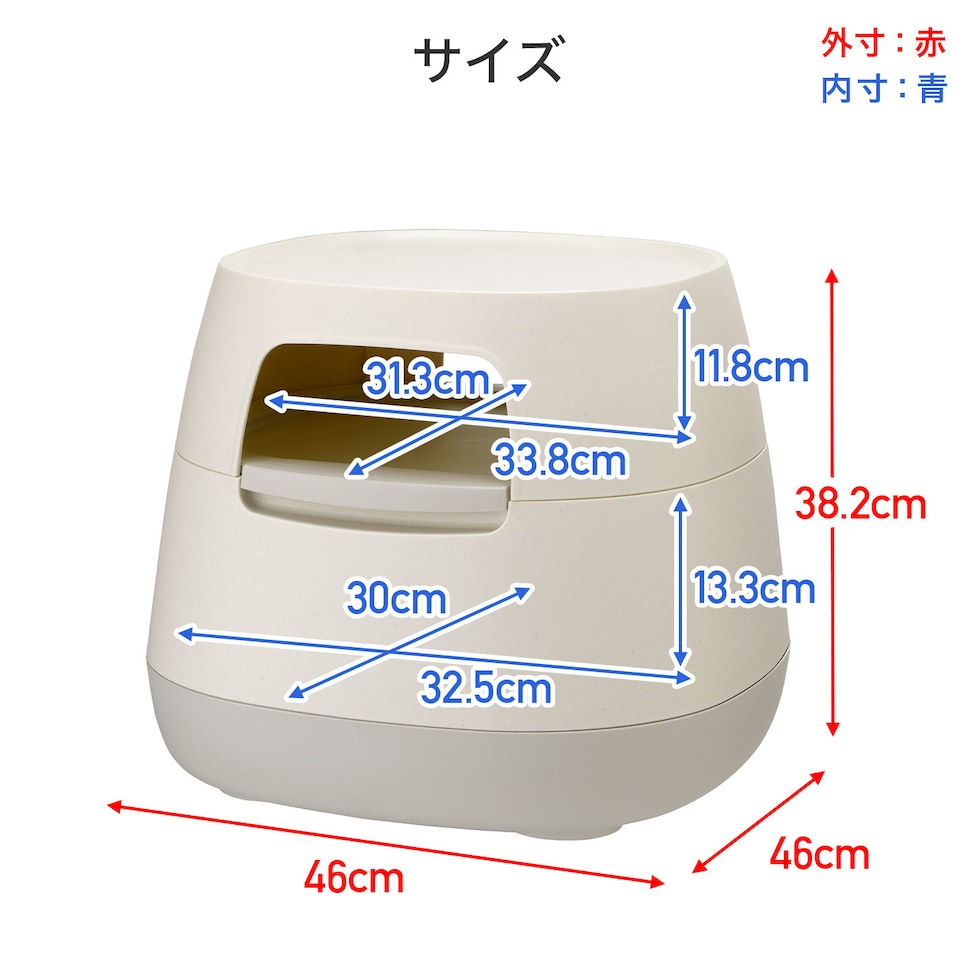 | 本体サイズ | 幅46×奥行46×高さ38.2cm 重量3.647kg |