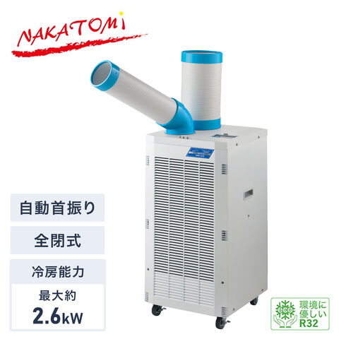 【代引不可】【法人・施設限定】 スポットクーラー 自動首振り 単相100V 全閉式モーター 冷媒R32 エコ冷媒 キャスター付き 排熱ダクト付き SAC-26S スポットエアコン 業務用 工場 倉庫 体育館 イベント ガレージ ナカトミ NAKATOMI 【送料無料】