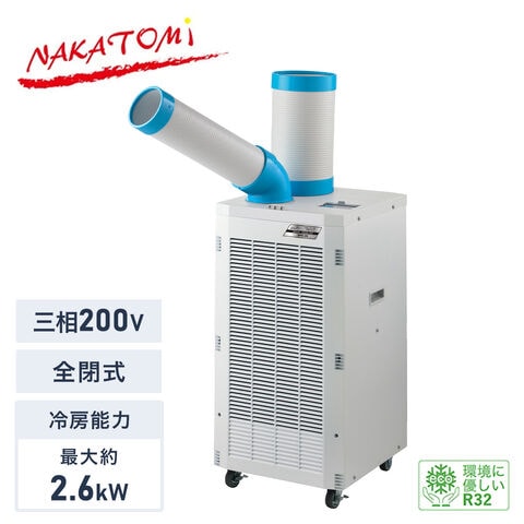 | ナカトミ NAKATOMI 【代引不可】【法人・施設限定】 スポットクーラー 三相200V 全閉式モーター 冷媒R32 エコ冷媒 キャスター付き 排熱ダクト付き SPC-26 |