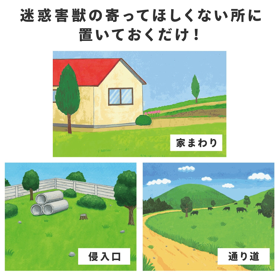 | 商品説明 | ●天然香料で寄せ付けない忌避タイプ ●迷惑害獣の寄ってほしくない所に置いておくだけなので手を汚しにくく簡単 ●雨風にも強く屋内外どちらにも使用可能 ●効果約2ヶ月 ●モグラ、ネズミ、イタチなどの小動物害獣に ※ニオイの感じ方には個人差がございます。 不快に感じられる場合がある可能性もございます ※モグラをはじめとする野生動物は、個人が許可なく捕獲、駆除することが鳥獣保護法で禁止されています |