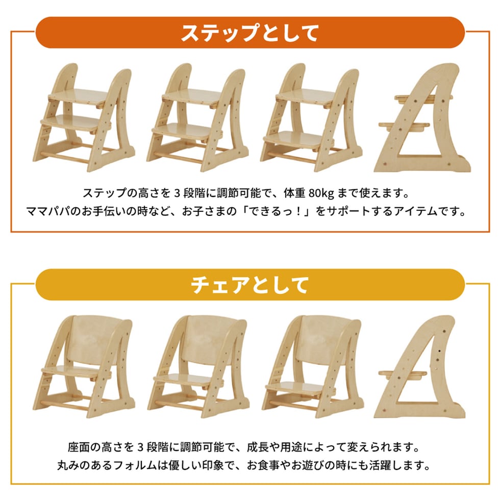 2WAY ステップ&チェア ノボルン 17603/17604 チェア ベビーチェア ステップ 踏み台 2段式 二段式 すべり止め付き キッチン リビング 洗面台 洗面所 手洗い場 シンプル おしゃれ 高さ調節 大人も使える 子育て カトージ KATOJI 【送料無料】
