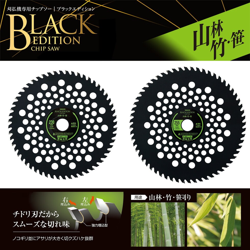 | 山善 YAMAZEN チップソー 刈払機 草刈機専用 外径230mm×36枚刃 255mm×40枚 取付穴25.4mm 山林 竹 笹 雑木 雑草 下草 BK-T230 BK-T255 |