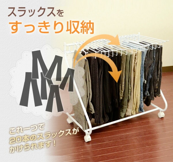 スラックスハンガー キャスター付き 3S-320043 ホワイト スラックス収納 スラックス掛け スラックスワゴン ズボン掛け ビーワーススタイル 【送料無料】