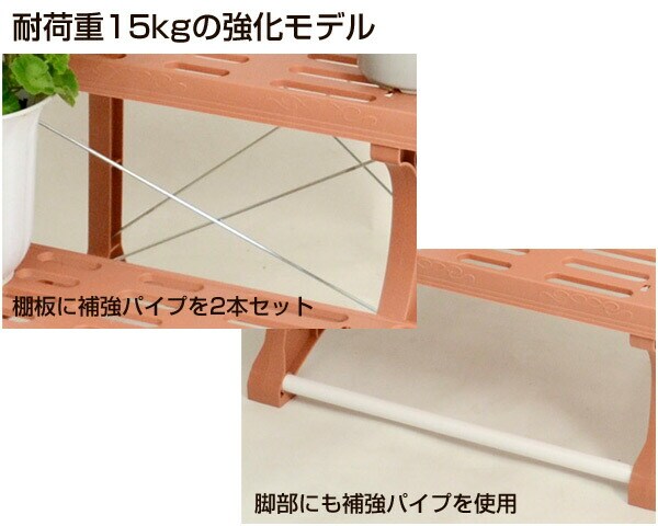 ●棚板に補強パイプを2本セットした、耐荷重15kgの強化モデル