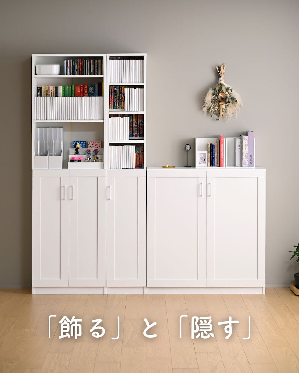 ●見せるディスプレイ収納と、「すっきり」隠せる扉付き収納のミックスアイテム