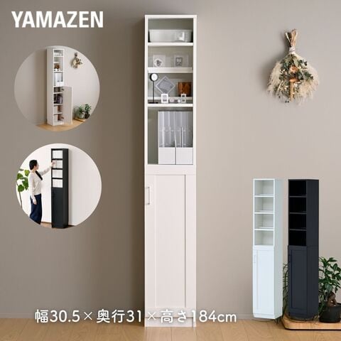 本棚 扉付き スリム 幅30.5 奥行31 高さ184cm 隙間 隙間収納 棚 シェルフ 木製 漫画 コミック すきま 隙間 収納 ラック ブックシェルフ 推し 推し活 山善 YAMAZEN 【送料無料】