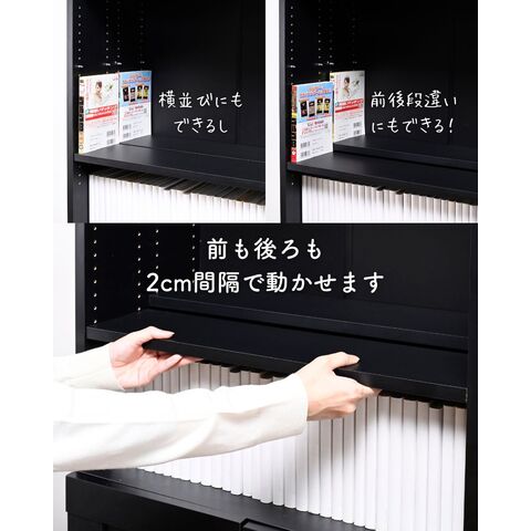 ●可動棚は前後に分離でき、奥がチラ見えする段差収納も可能