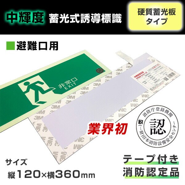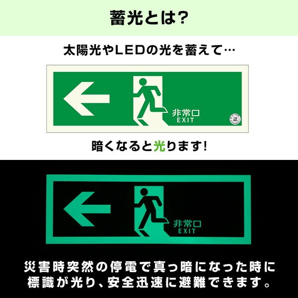 中輝度 蓄光式 避難口誘導標識 消防認定品 両面テープ付き TPSNシリーズ 硬質塩ビ板タイプ TPSN801/802/803/804 非常口 標識 案内板 看板 蓄光 光る 夜光 発光 防災 避難 節電 安全対策 目印 プレート 非常階段 廊下 エルティーアイ LTI 【送料無料】