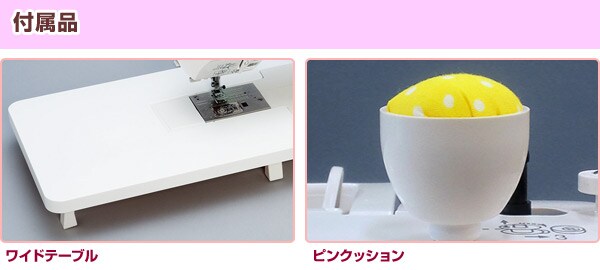 | 商品説明 | ●電源:AC100V(50/60Hz) ●消費電力:35W ●付属品:押え各種、針セット、ボビン、ねじまわし、シームリッパー、糸立棒、糸こま押え(大・小)、ブラシ、糸こまフェルト、補助糸立台、糸こま受け台、説明書、説明DVD ●スタート/ストップ、返し縫い:ボタン式 ●スピード調節:スライド無段階 ●縫いステッチ:20種類 ●全自動ボタンホール:3種類 ●釜の種類:水平全回転釜 ●液晶ディスプレイ:LCD ●自動糸調子 ●コントローラージャック、止め縫いボタン、針上下ボタン、自動針穴糸通し:有 ●使い方がわかる説明DVD付き ●保管に便利なハードケース付き |