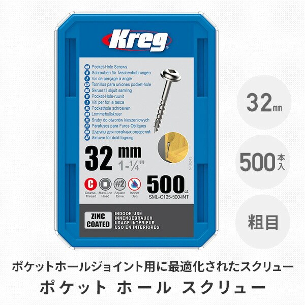 ポケット ホール スクリュー 32mm 粗目 500本 SML-C125-500-INT ポケットホールジョイント 穴あけ ねじ止め 接合 セルフタッピング 木材 クレッグ Kreg 【送料無料】