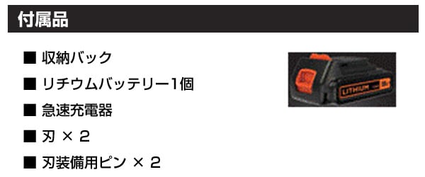 | 商品説明 | ●ボルト数/バッテリー容量:18V/2.0Ah ●バッテリータイプ:リチウム ●充電時間:60分 ●最大作業時間:約49分(1.5Ah時43分) ●付属品:収納バッグ、リチウムバッテリー×1個、急速充電器、刃×2、刃装備用ピン×2 ●2つの専用刃で簡単に土がほぐせる ●本体の長さ調節可能(137-157cm) |