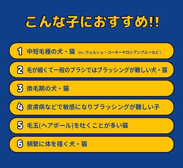 | 商品説明 | ●マッサージ効果もある犬猫兼用ブラシ ●シリコンの突起が付いており、ブラッシングするだけで抜け毛を簡単に除去 ●100%韓国国内産の高級シリコン素材 ●ペットの皮膚に負担をかけず適度な刺激で気持ち良くマッサージ ●毎日抜け毛管理をすることで、抜け毛を放置することによる湿疹や各種皮膚病を予防 ●短毛、中毛、長毛、全タイプ使用可能 ●ブラシに絡まった抜け毛や汚れを水に流すだけで簡単に洗うことが可能 ●使用方法:毛の流れに沿って優しく撫でるようにブラッシングしてください |