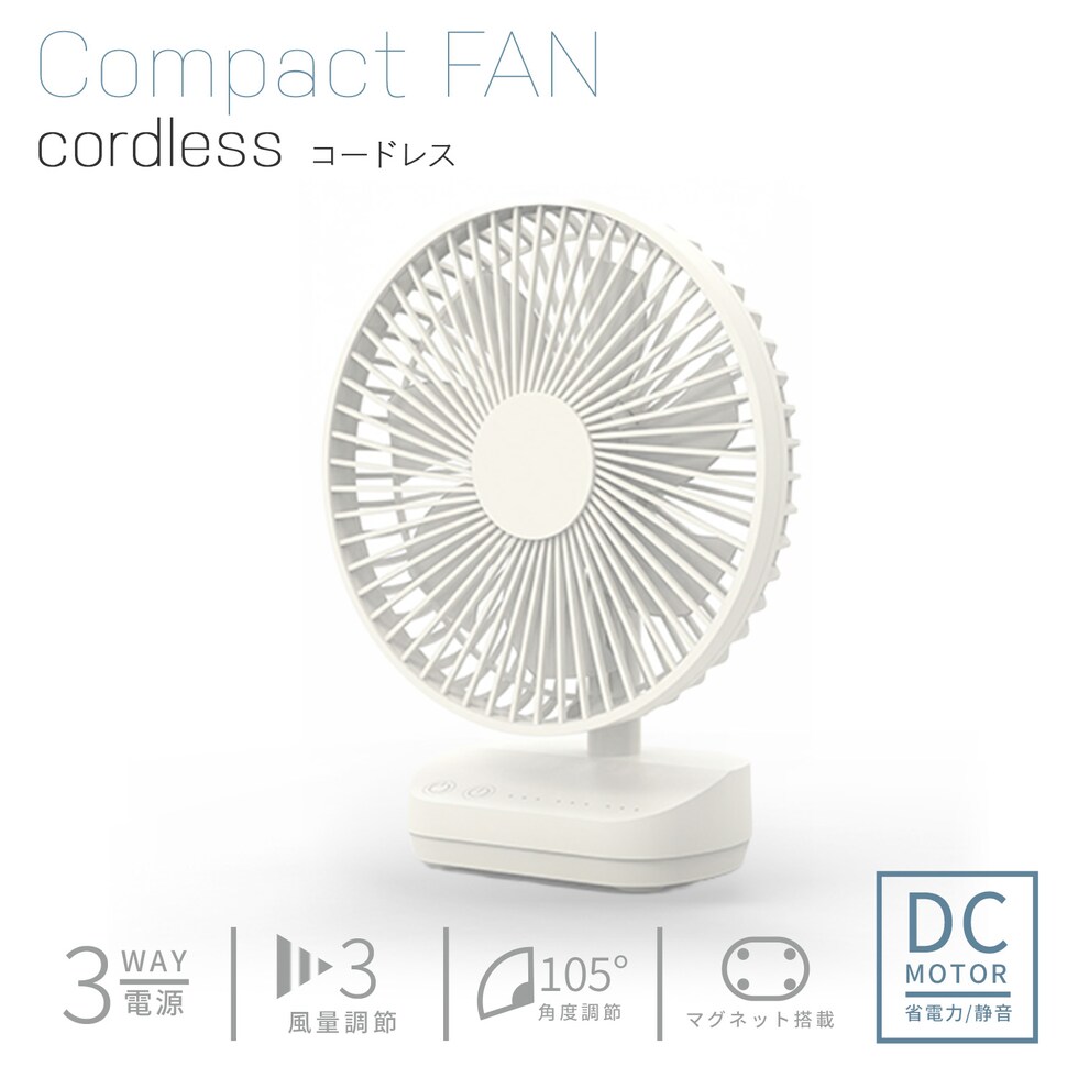 | トップランド TOPLAND 卓上扇風機 dcモーター dc扇風機 どこでもFANコードレス 3WAYコンパクトファン SF-DFC25 |