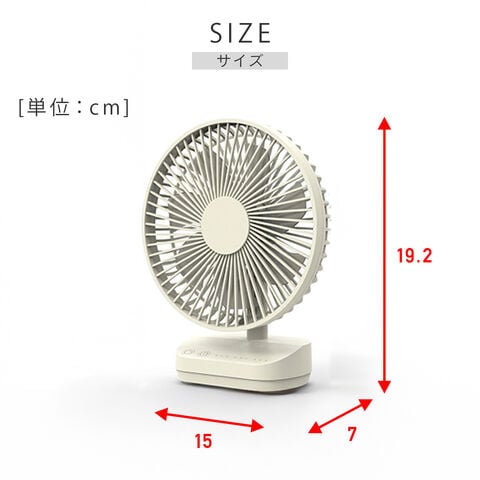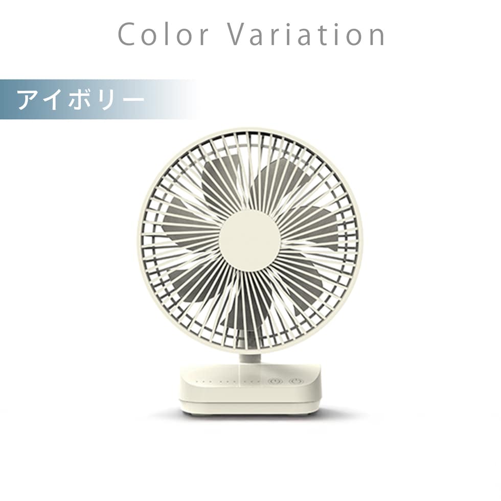 | 商品説明 | ●電源:3WAY ・内蔵電池:リチウムイオン電池 3000mAh ・家庭用コンセント:AC100V(50/60Hz) ・USB電源:DC 5V ●消費電力:最大8W ●連続稼働時間(内蔵電池使用時):約28時間/弱、約8.5時間/中、約4.5時間/強 ●充電時間:約5時間 ●風量調節:3段階(弱・中・強) ●手動角度調節:上下に最大105度(上90度/下15度) ●切タイマー:1/3/5時間 ●オートオフ機能:10時間使用で自動停止 ●羽根径:12cm ●羽根枚数:7枚 ●付属品:専用ACアダプター、USBケーブル(USB A→microUSB)、取扱説明書兼保証書 ●メーカー保証:1年間 ※2026年3月発売分より型番・カラーバリエーションが変更になっております |