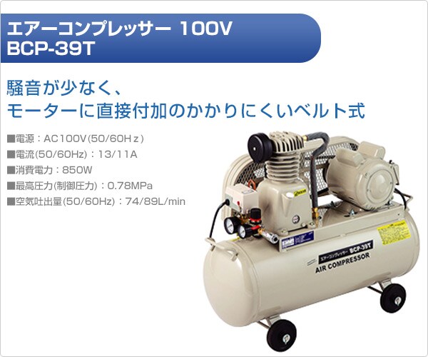 エアーコンプレッサー 100V BCP-39T エアコンプレッサー 空気入れ エア工具 ベルト式 ナカトミ(NAKATOMI) 【送料無料】