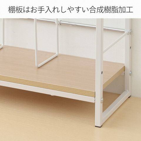 | 材質 | 棚板:合成樹脂化粧繊維板(塩化ビニル樹脂) フレーム:スチール(粉体塗装) |