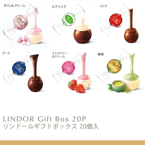 セット内容リンドールの期間限定フレーバー「スプリング」「さくら&クリーム」に加え、ミルク・ダーク・ホワイトチョコレートをバランス良く楽しめるアソートメント。