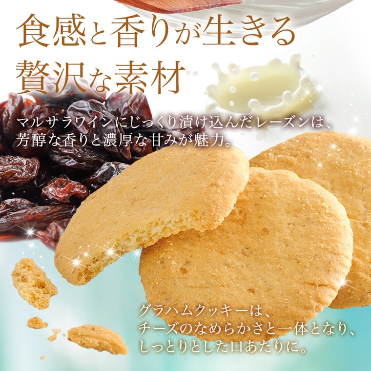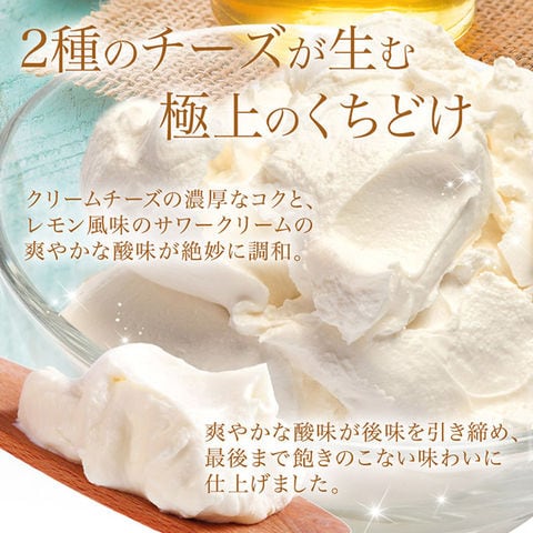 | 濃厚でコクのあるチーズが口の中で広がり、その後を爽やかなレモンの風味のサワークリームが追いかけます。マルサラワインで漬け込んだジューシーなレーズンやクッキー生地なども加わり、食べすすめるうちに、次々に美味しさが追いかける、まさに魔法のチーズスイーツです。 |