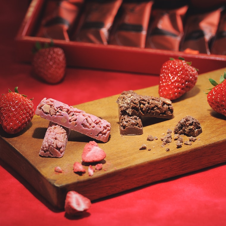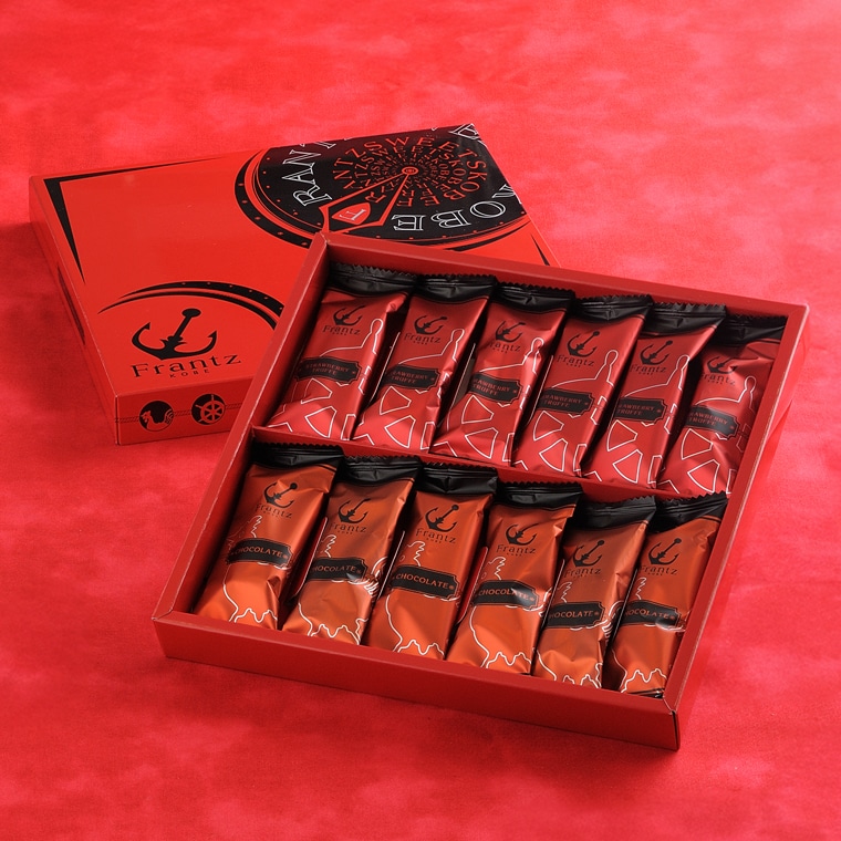 香ばしく焼き上げたワッフルコーン生地を少し粗めに砕き、神戸フランツオリジナルチョコレートと混ぜ合わせました。 プレーンとストロベリー、2つの味が楽しめる贅沢なセットです。 |