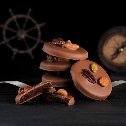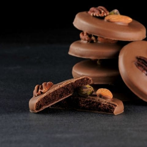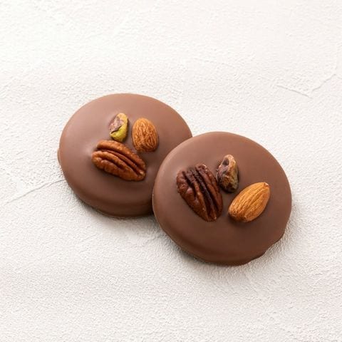 | くちどけなめらかな濃厚ミルクチョコレートで、ザクザク食感のカカオサブレを贅沢にコーティング。さらにチョコレートと相性の良い3種のナッツをトッピング。ひと口ごとに広がる、深みのあるカカオの余韻をお楽しみください。 |