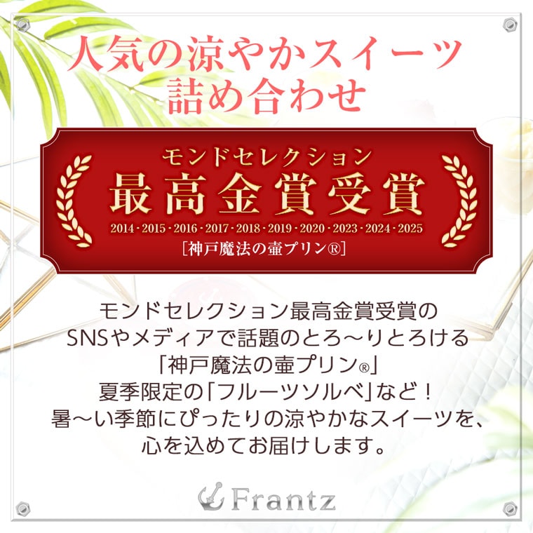 「魔法の壷プリン」(第5574024号)(第5570742号)は神戸フランツの登録商標です。 |
