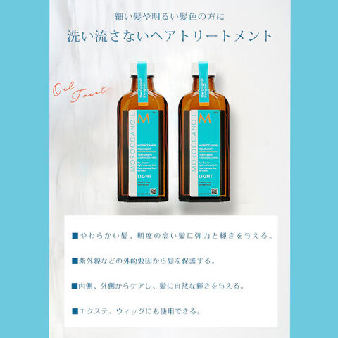 <洗い流さないヘアトリートメント>シルクのように輝くイキイキとした髪のためのモロッカンオイルトリートメントライトは、細い髪のデリケートな二―ズや明るい色の髪(プラチナブロンドや白など)に対応するために誕生しました。