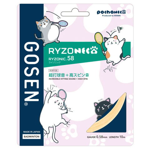 ゴーセン GOSEN バドミントン ガット・ストリング バドミントンガット・ストリング RYZONIC 58 ライゾニック 58 限定カラー ぽちゃ猫 パッケージ 単張 2025新製品