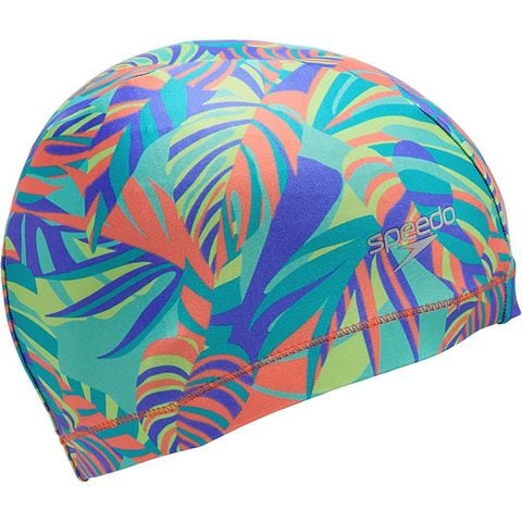なめらかでソフトな肌触りのトリコットキャップ。頭を締め付けることなく優しく包み込み、フィット感にも優れています。力強く自生する木の葉をモチーフにしたカラフルなグラフィック柄です。プールエクササイズなどで心地よい着用感を求める方におすすめです。※1点1点プリントの見え方が異なりますので、あらかじめご了承ください。