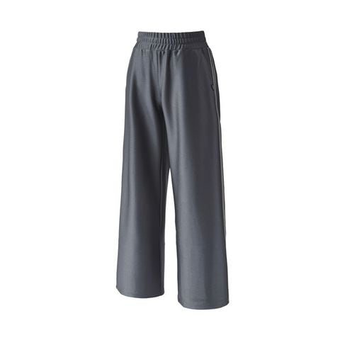光沢感のあるジャージ生地をを使用したロングパンツ。股下丈は少し長めでワイドなシルエット。サイドにはフリルのストレッチテープがついている。