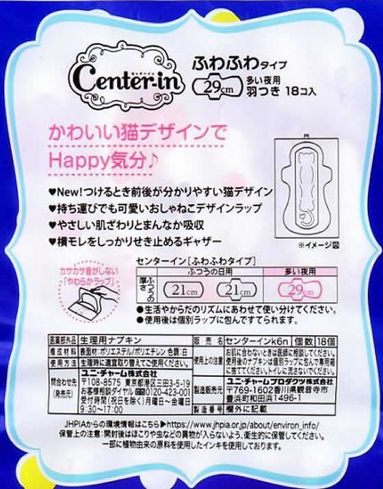 ユニ・チャーム センターイン ふわタイプ 多い日夜用 羽付 18枚