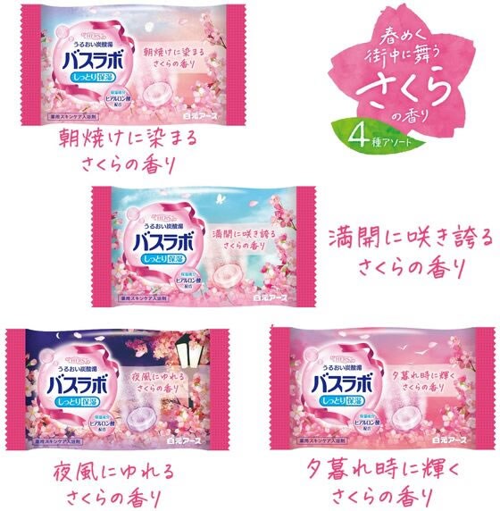 ●ヒアルロン酸(保湿成分)配合。《時間によって変わるさくらの香りを4つのシーンに分けて表現》