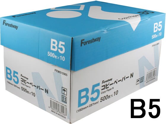 送料無料 Forestway コピーペーパーN B5 500枚×10冊 コピー紙 印刷用紙 オフィス用品 大量印刷 事務用品 書類 FAX 両面 資料 印刷 実用品 備品 まとめ買い