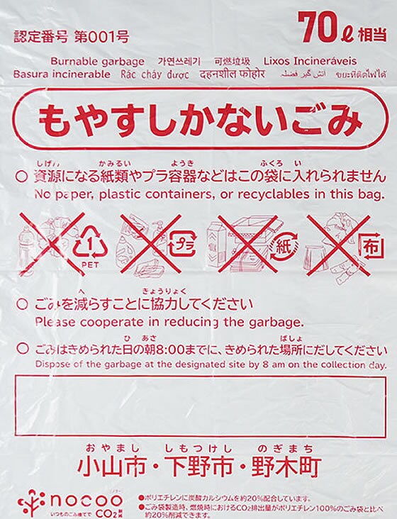 日本サニパック 小山市・下野市・野木町指定ごみ袋 70L 10枚 半透明タイプ ゴミ袋 ゴミ箱 清掃