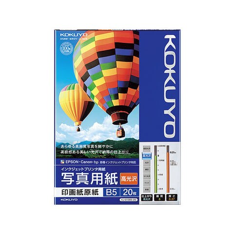 コクヨ IJP用写真用紙 印画紙原紙 高光沢B5 20枚 インクジェット用紙 光沢紙