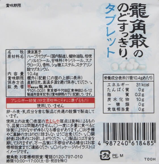 龍角散のハーブパウダーを配合したのどケアのためのタブレットです。