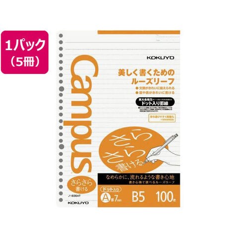 コクヨ ルーズリーフ(さらさら書ける)B5 A罫7mmドット入 100枚*5 ルーズリーフ B5 ノート