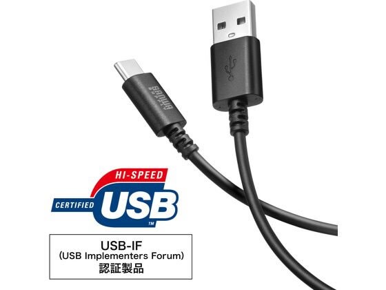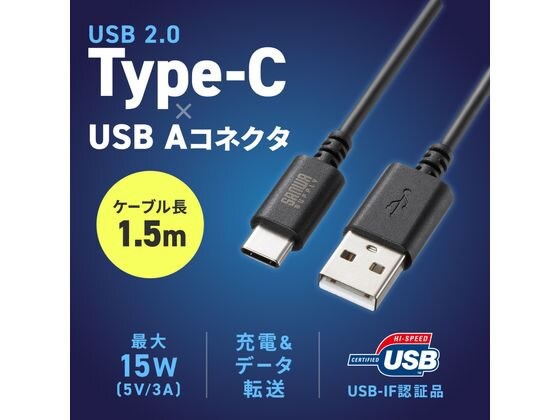 【お取り寄せ】 サンワサプライ USB 2.0 Type-Cケーブル(1.5m・ブラック) KU-CA15BK USBケーブル C to A ケーブル 電源タップ 配線パーツ 家電