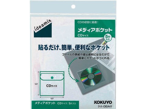 コクヨ メディアポケット〈ideamix〉CD用 5片 タホ-DEA41 貼るタイプ メディア用ポケット メディア収納用ポケット クリヤーファイル